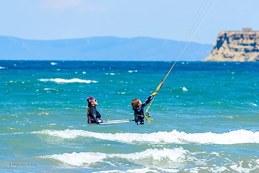 The course includes theory about the wind theory; ground control – rigging, line management, flying techniques, safety; water – body drags, water starts with board, basic riding and self-rescue